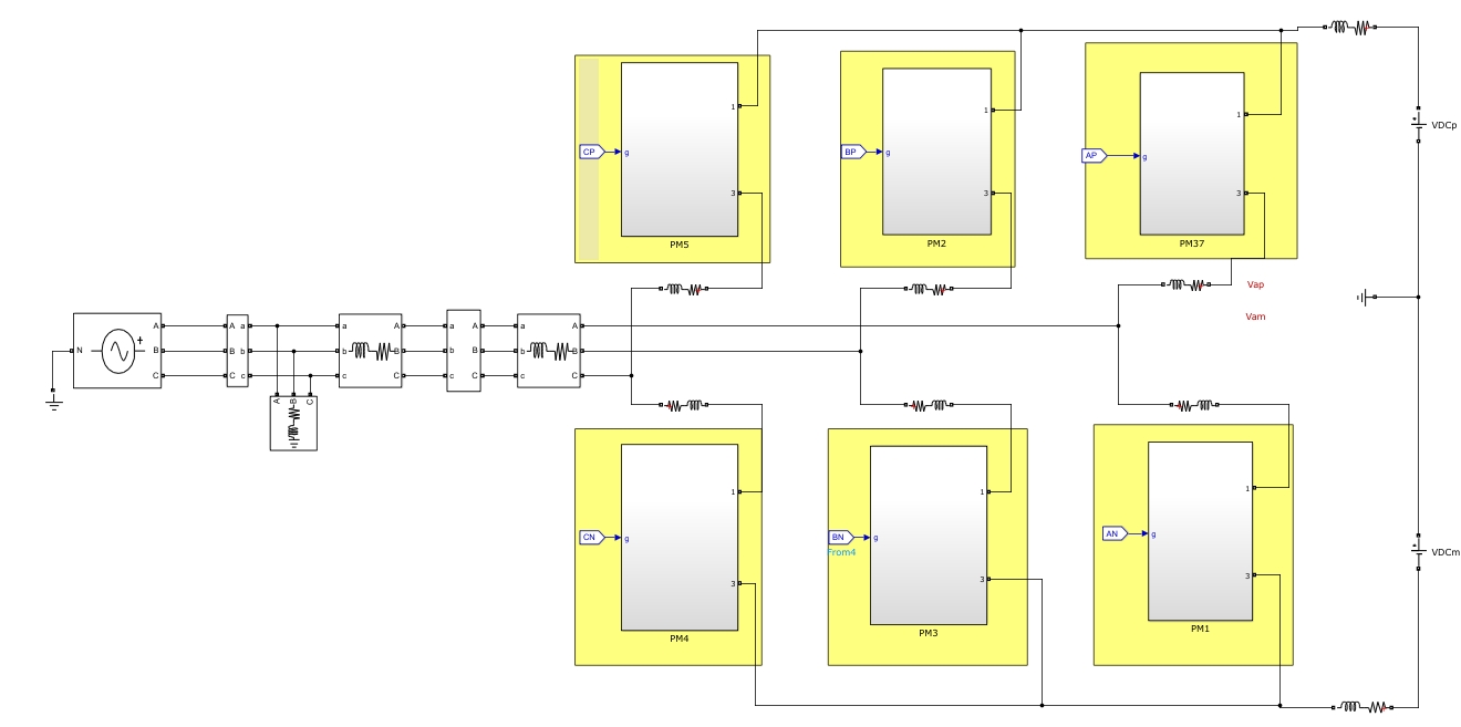 模块化多电平变流器/MMC/的VSG控制/虚拟同步发电机控制/MATLAB–Simulink仿真模型 5电平三相MMC,采用VSG控制。 受端接可编辑三相交流源,直流侧接无穷大电源提供调频能量。 设置频率波动和电压波动的扰动,可以验证VSG控制的调频调压效果