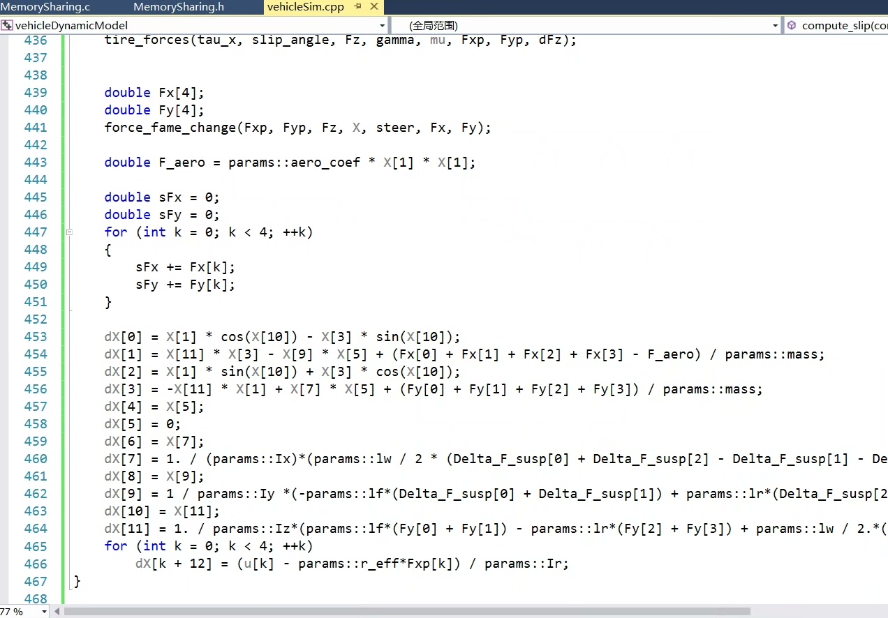 接下来,我们要加入具体的动力学计算代码,来模拟车辆的各种运动。这部分代码会稍微复杂一些,因为要考虑到很多物理因素。