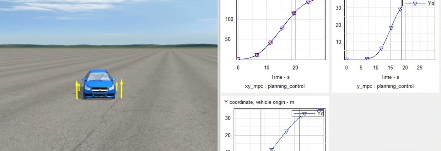 自动驾驶横纵向控制,纵向采用pid控制,横向采用mpc控制,根据的是车辆二自由度车辆动力学模型,得到各矩阵之后在S函数里面进行编写,纵向参考百度Apollo纵向双环PID控制算法,横向参考百度Apollo中mpc控制算法编写,规划的轨迹为五次多项式函数形式。 控制效果:车辆侧向位移和纵向位移跟踪效果很好,纵向车速跟随也较好,但有一定的误差。 Matlab/Simulink版本:2021a Carsim版本:2019.0