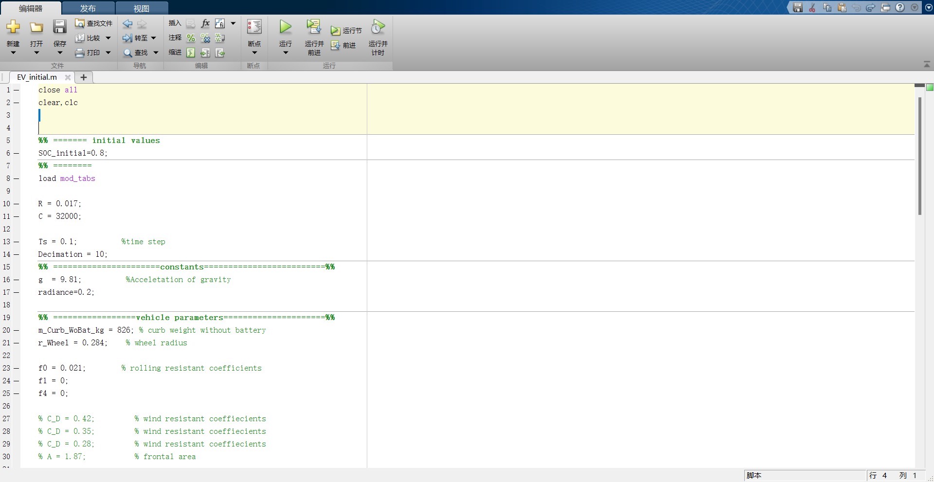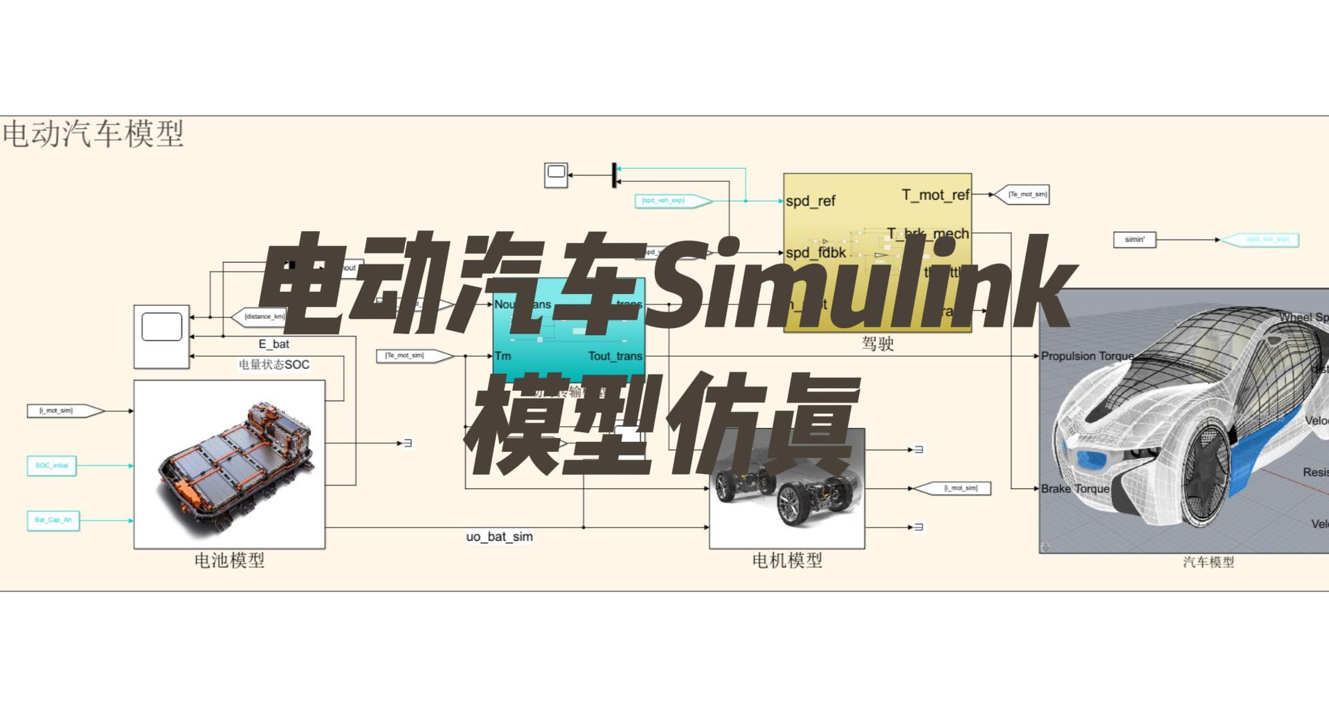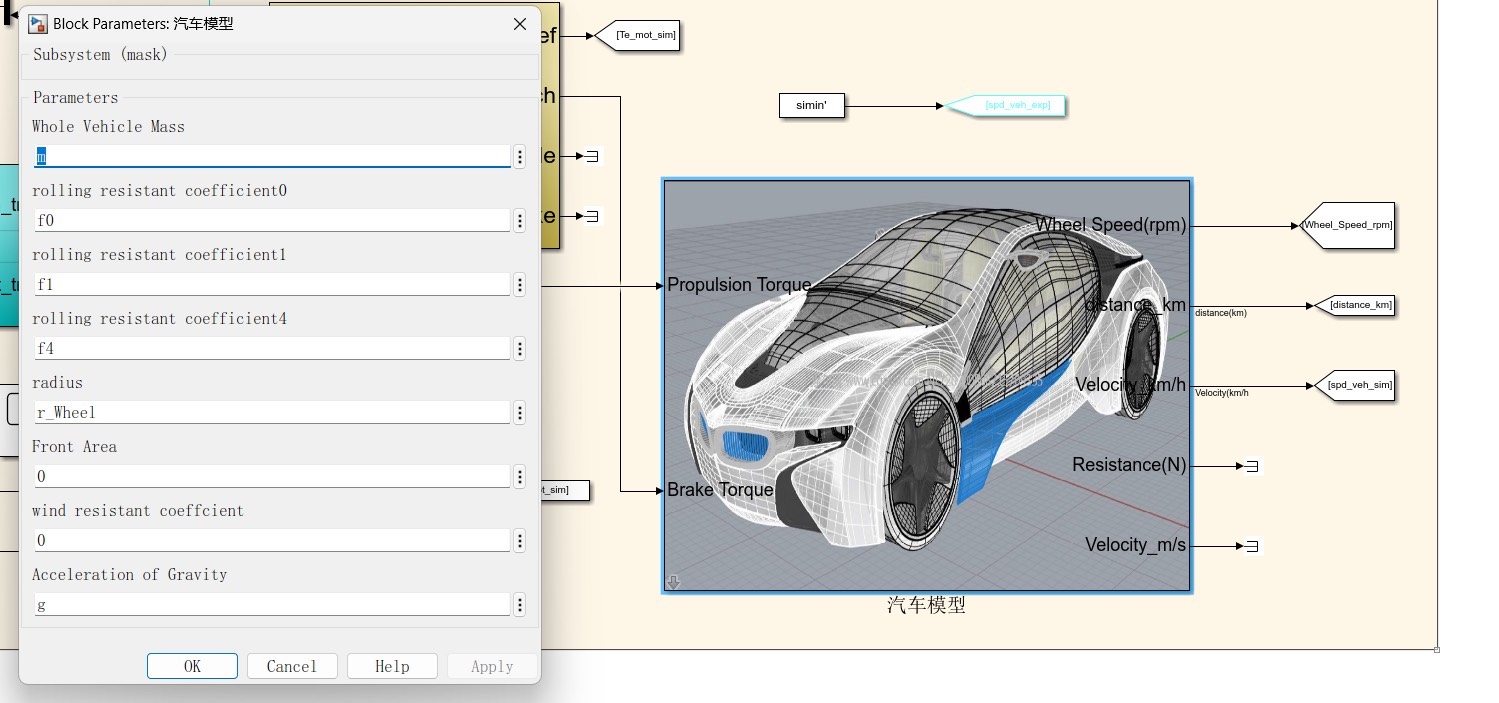 电动汽车模型Simulink仿真 仿真中搭建了电动汽车模型,包括电池模型、电机模型、动力传输模型以及汽车模型,仿真中的参数由C文件在Matlab中进行初始化设置。
