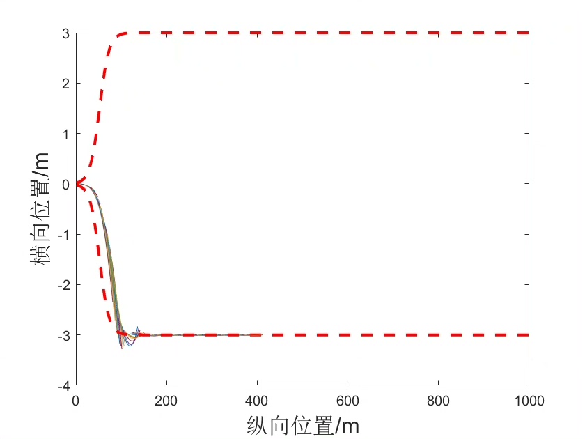 在Simulink里调试这个模型时,发现一个有趣的"量子纠缠"现象——Carsim的车辆动力学模型和Matlab的路径规划器之间存在约0.5秒的通信延迟。解决方法是在Stateflow里加了个预判状态,用当前方向盘转角预测未来0.5秒的轨迹偏移量,相当于给系统戴了副"时间望远镜"。