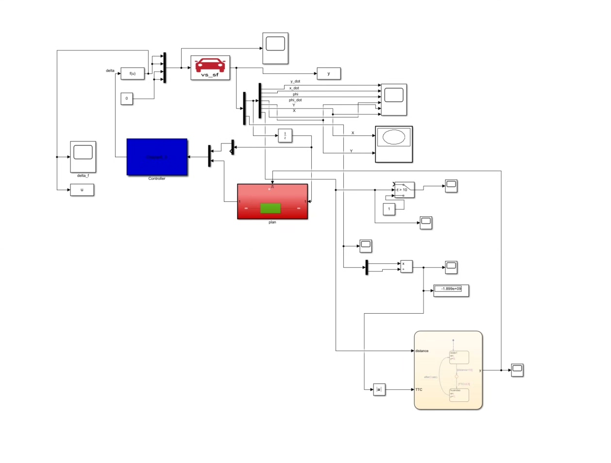 carsim与matlab联防,采用安全距离与ttc触发,通过触发模块控制路径规划,生成换道路径,触发采用stateflow, 在生成的轨迹簇中寻找最优轨迹,模型仅供参考(03)。