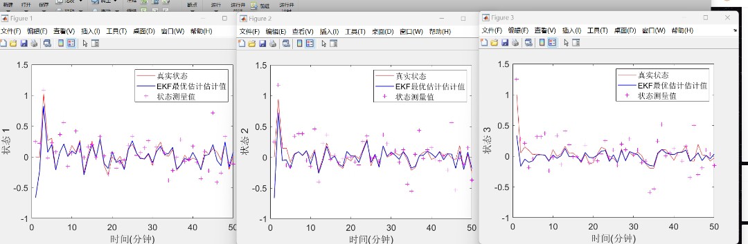 最后通过Matlab的绘图函数,将真实状态和估计状态绘制在同一张图上,直观地展示EKF对系统状态的估计效果。