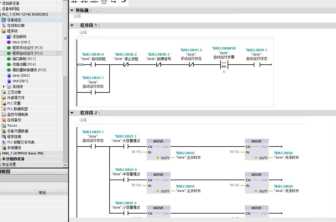 在这段代码里,“LD I0.0”表示加载输入点I0.0的状态,也就是启动按钮的状态。当启动按钮按下,I0.0接通,逻辑状态为“1”。“ = Q0.0”就是把这个逻辑状态赋值给输出点Q0.0,从而控制电机运行。实际的洗衣机梯形图会更复杂,比如还要考虑水位检测、洗涤时间控制等逻辑。例如: