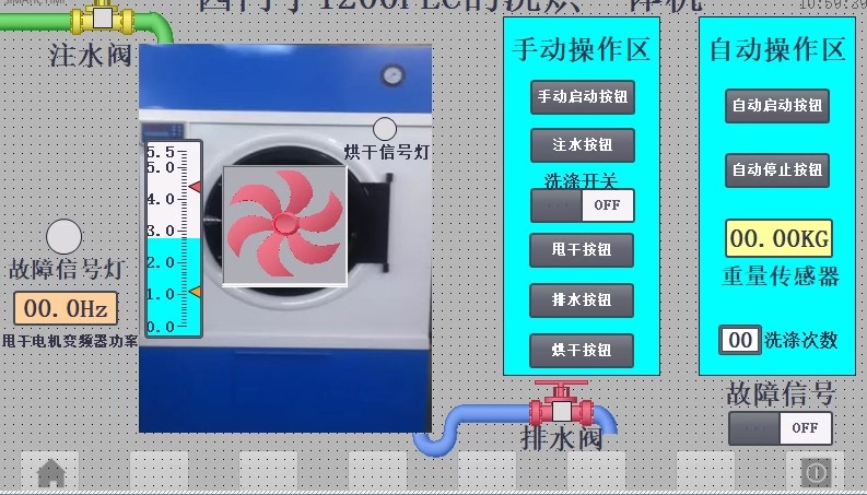 组态画面是操作人员与PLC控制系统交互的窗口。通过组态软件,我们可以创建直观的操作界面。在全自动工业洗衣机的组态画面上,会有启动、停止按钮的图形化表示,操作人员点击画面上的按钮,就如同按下实际的按钮一样控制洗衣机运行。