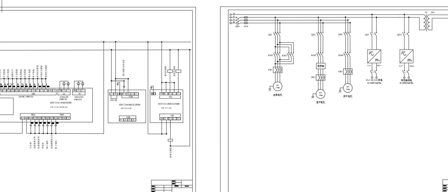 接线图和原理图是实现控制系统硬件连接的关键图纸。接线图详细标注了各个设备与PLC之间的物理连接关系,而原理图则侧重于展示电路的工作原理。