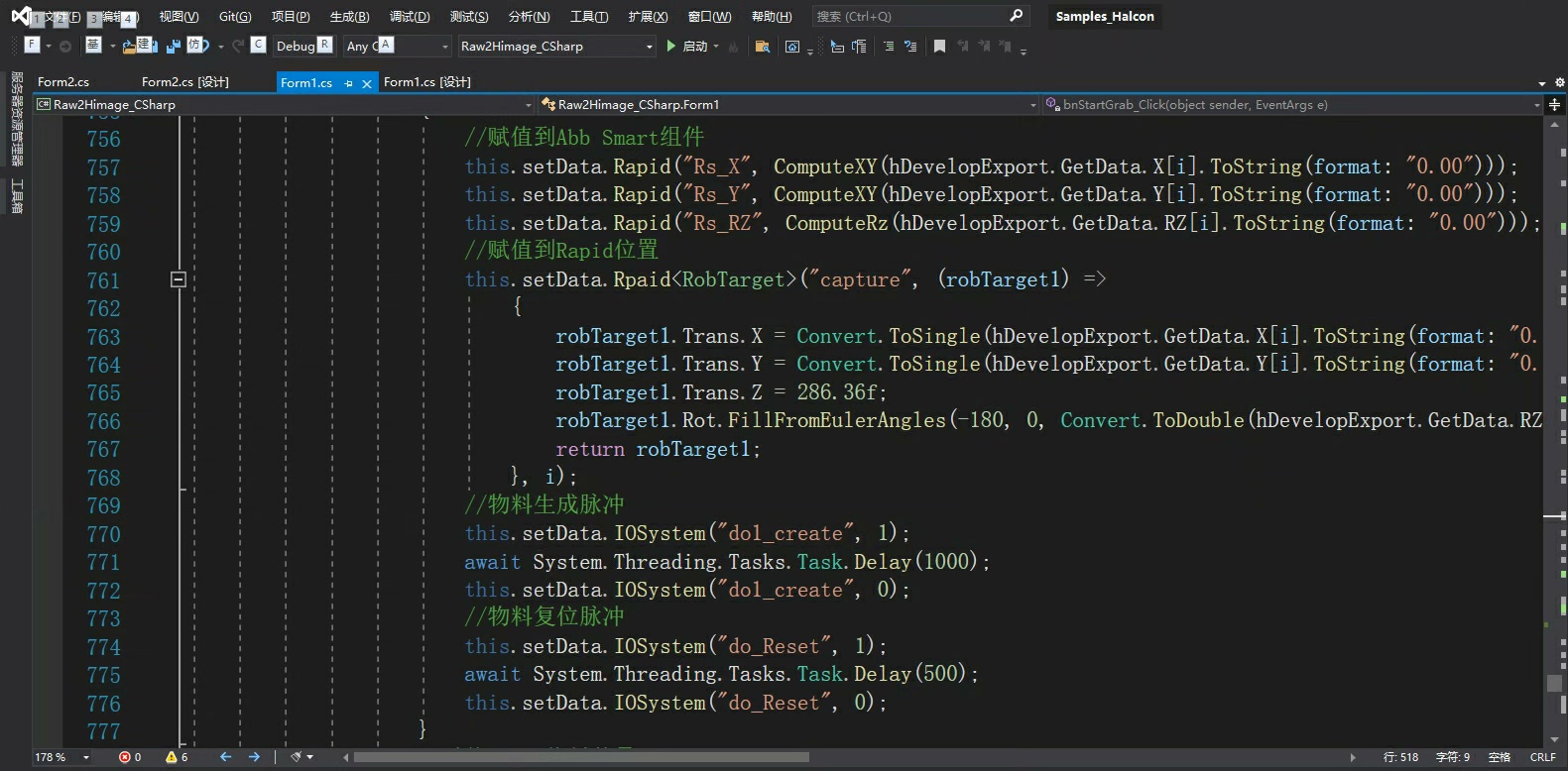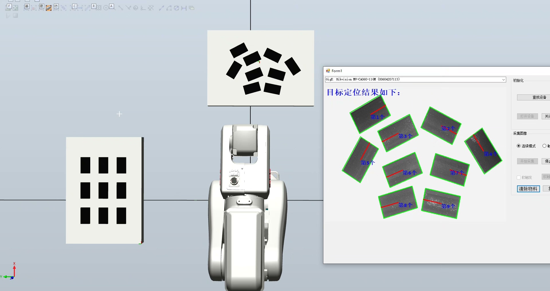 abb机器人视觉引导抓取C#联合halcon联合RobotStudio实现虚拟仿真九点标定海康工业相机C#上位机视觉抓取 -本链接只出源码+工作站,不出任何硬件,工业相机请自备 -提供2个版本一个是有海康工业相机 和 无工业相机 1.有海康工业相机提供标定教程和咨询 2.没有海康工业相机的提供100张图片仿真和咨询 -本项目无需实体机器人一样能玩视觉引导非常适合新手学习 -使用的软件有 1.RobotStudio 6.08 Rapid编程,smart组件仿真 2.Visual Studio 2019 C#集成halcon代码+pc sdk二次开发 3.halcon视觉算法