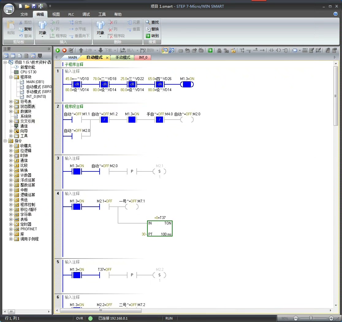 在西门子200smart中,可以这样编写程序: