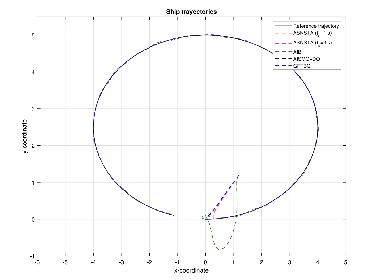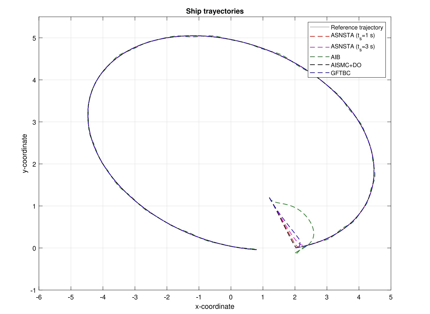 水面上的船舶控制是个挺有意思的挑战,尤其是遇到风浪干扰的时候。咱们今天聊点硬核的——怎么让船在有限时间内精准跟踪预定轨迹,就算有未知干扰也不翻车。这活儿听着像开挂,但用对了方法还真能实现。