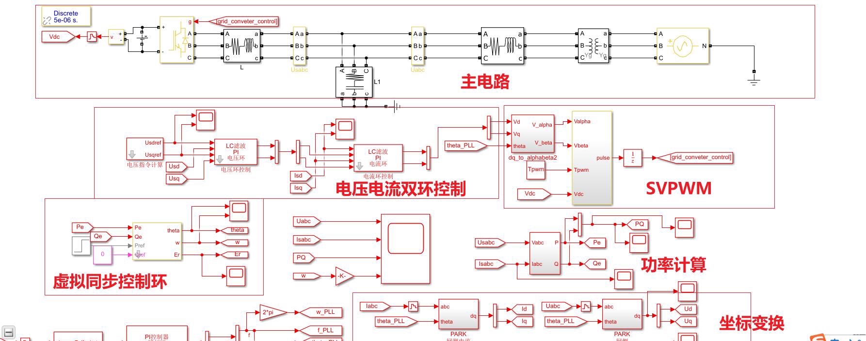 #虚拟同步发电机VSG并网模型,基于MATLAB/simulink搭建 功率等级 100kw