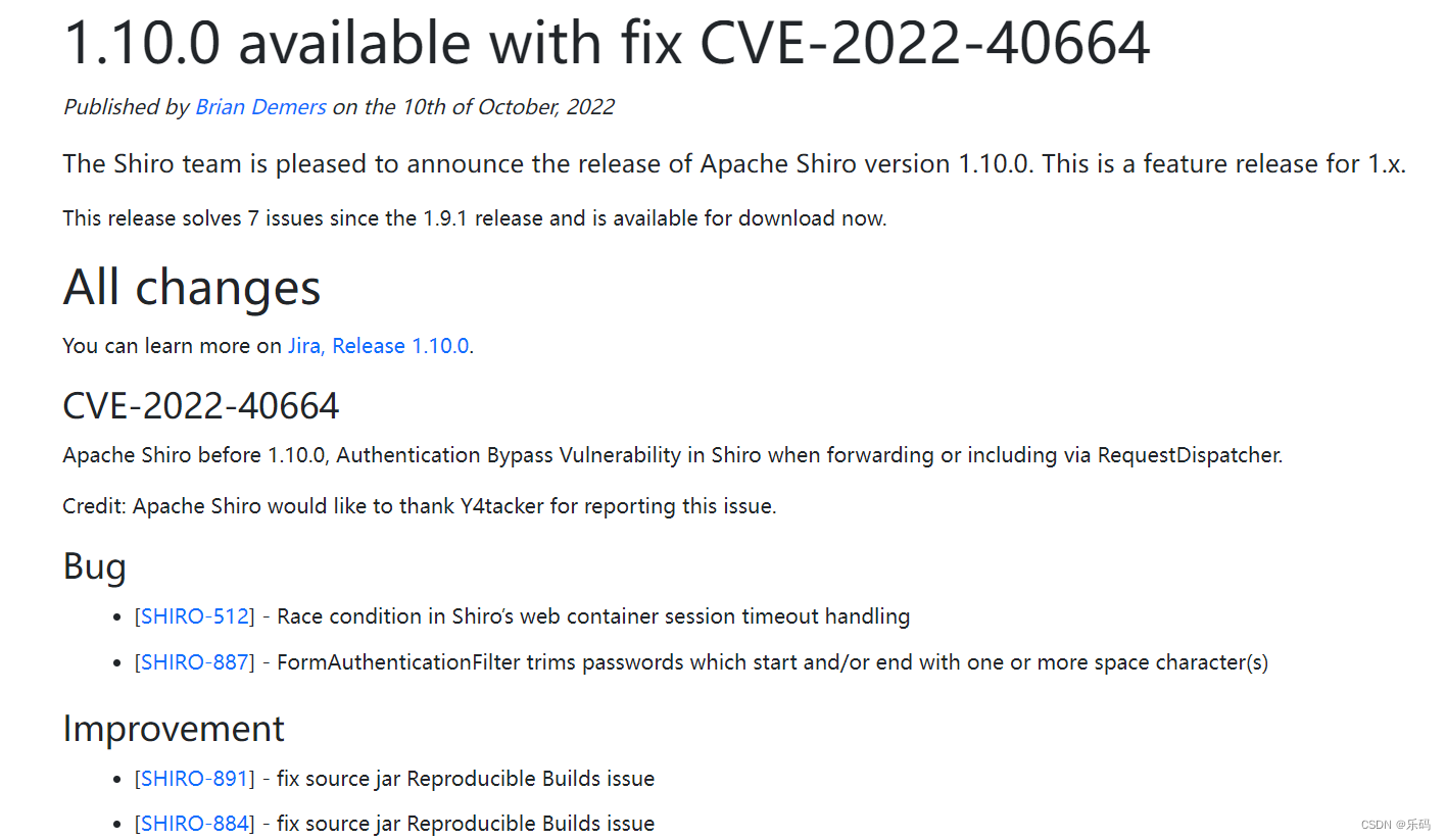 1、1.10.0 available with fix CVE-2022-40664 | Apache Shiro