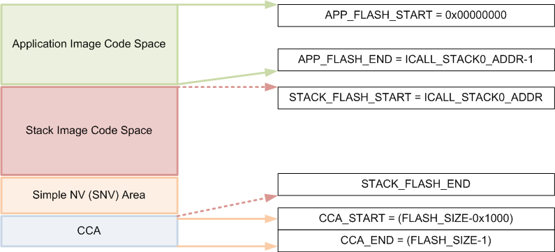 | STACK_FLASH_START | 协议栈镜像的起始位置(ICALL_STACK0_ADDR) | Stack | FLASH_START | FLASH_START |