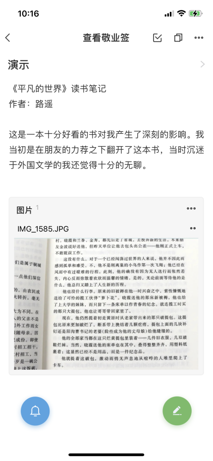随着技术的发展,很多读书笔记APP应运而生,而在众多软件中,我觉得敬业签还是非常不错的。它的容量很大,能够分类记录,还能够把书中的图片放进去,效果更加好。