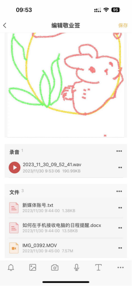 敬业签备忘录支持上传文件的工具,同时它支持手机电脑云同步。通过登录同一个账号,我们可以在电脑和手机上共享文件内容,无论是在办公室还是在外出途中,只要打开备忘录就可以随时随地访问、下载文件。(电脑端)