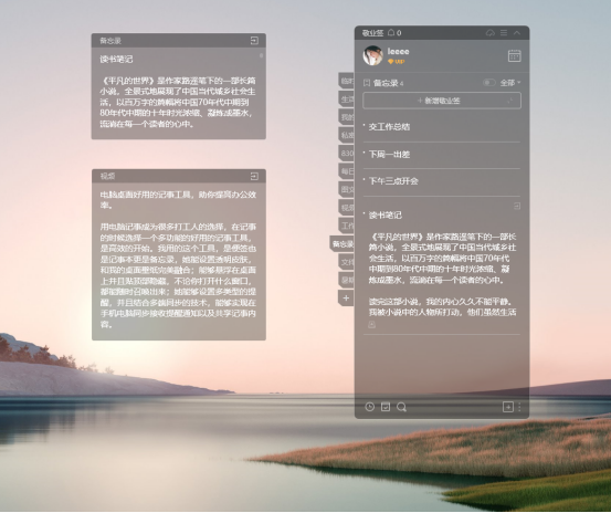 最近,我发现了一款特别好用的桌面便签工具——敬业签。它不仅具备了传统便签的所有功能,还增添了许多贴心的设计。比如,你可以用它来记事、存文件,再也不用担心灵感和资料会丢失了。而且,它还支持多端同步共享内容,无论你是在电脑、手机还是平板上,都能随时查看和编辑你的便签,真正实现了信息的无缝衔接。