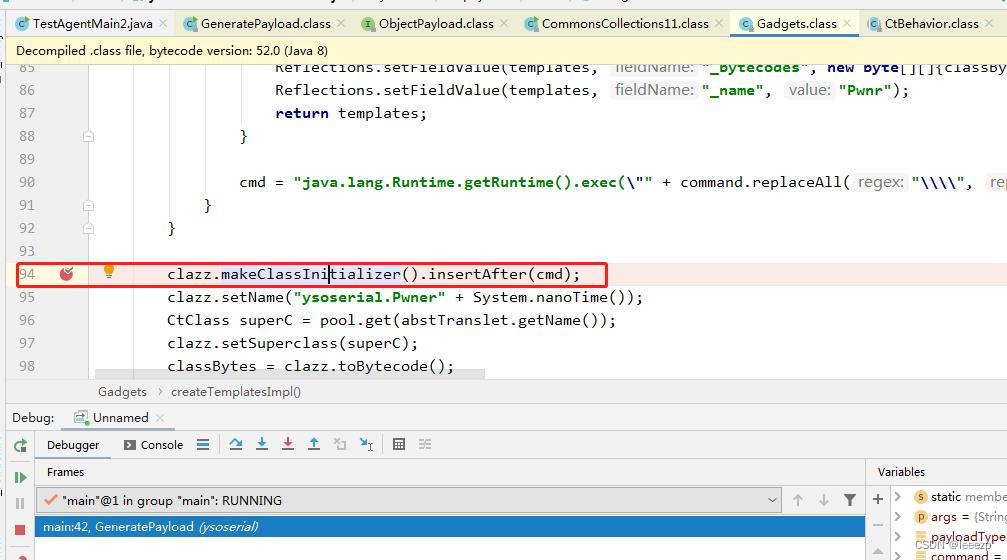 Gadgets.class clazz.makeClassInitializer().insertAfter(cmd); line94 报错