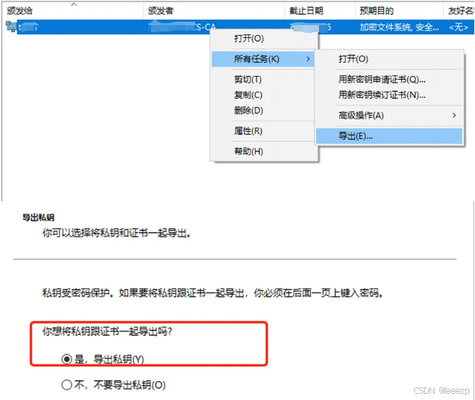 5)登录CA服务器导出ADCS证书的私钥。(最简单最好用的方式,运行框输入certsrv.msc)