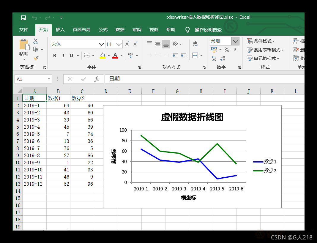 图表的数据,直接使用数据1和数据2的内容,并且前半部分,数据的写入就是上面的代码。