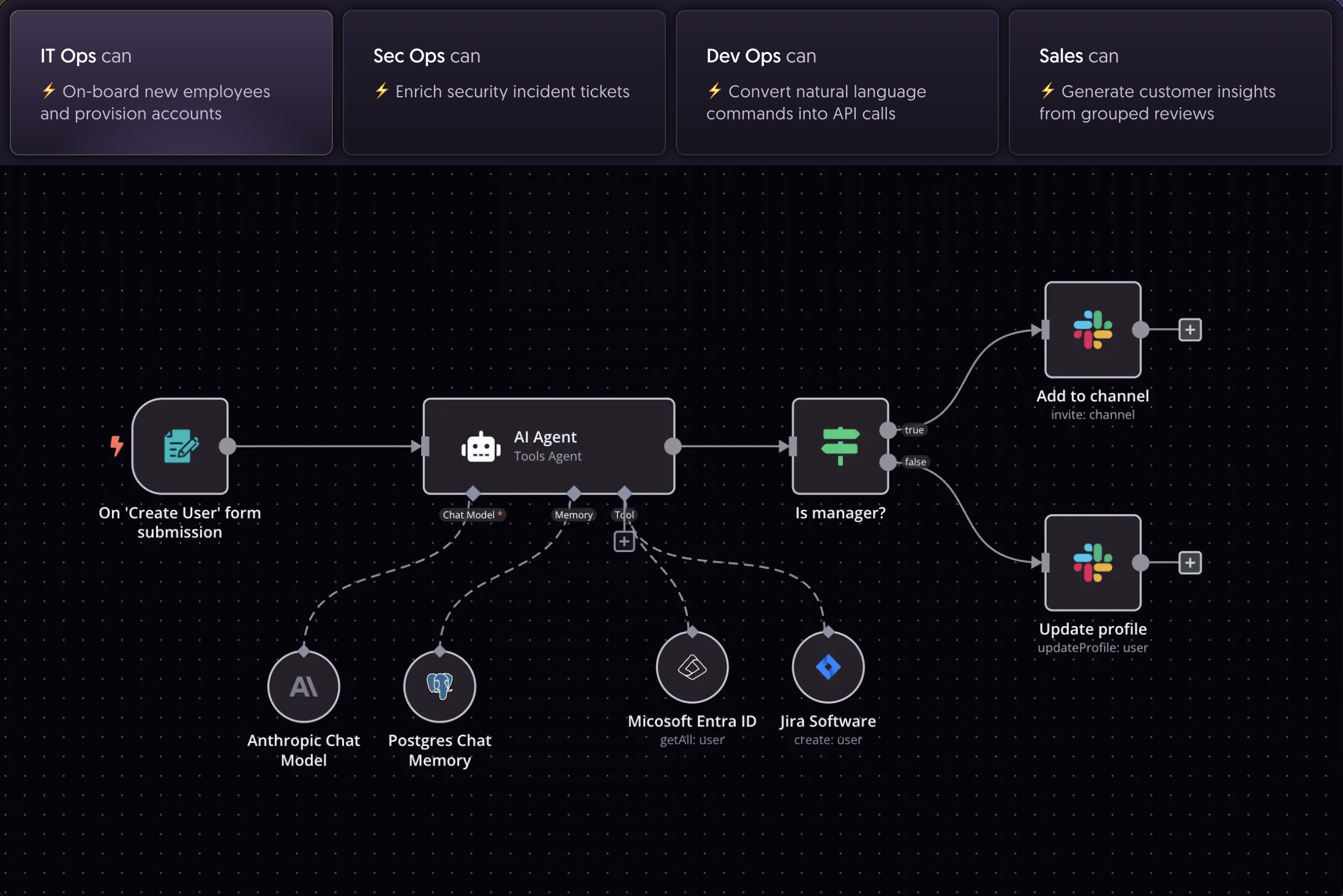 "n8n 是技术团队自动化领域的瑞士军刀,既能享受可视化搭建的便捷,又能随时插入代码实现复杂逻辑。" —— 某 Fortune 500 企业 DevOps 负责人