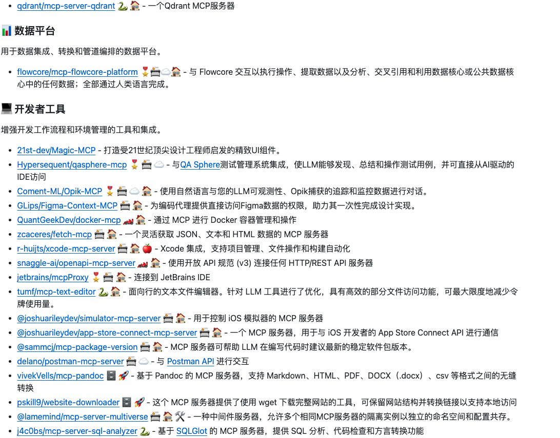 Awesome MCP Servers 作为AI工程化的重要基础设施,正在重塑智能体开发范式。通过: