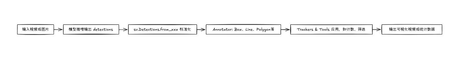 | 区域计数工具 | 内置 LineZoneCounter、PolygonZoneCounter | 手写几何判断复杂冗余 |