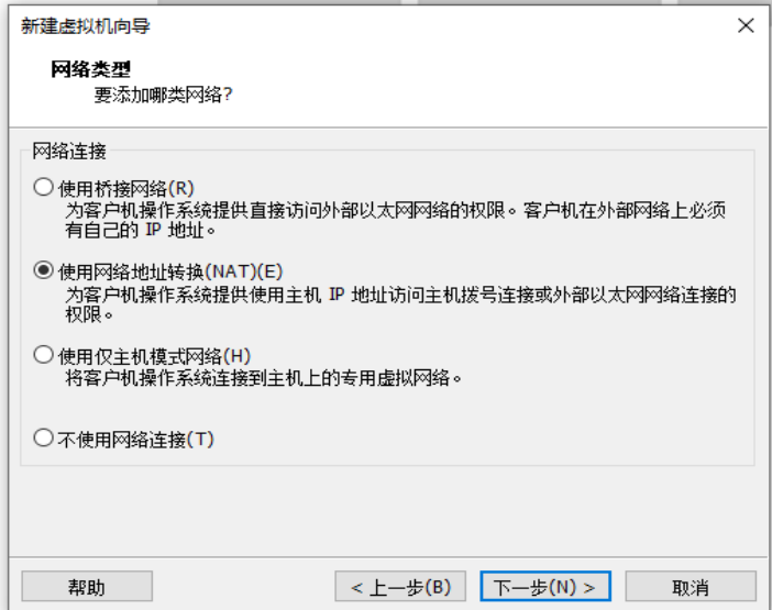 第八步:选择网络类型,此时选择使用网络地址转换(NAT)(E),单击下一步