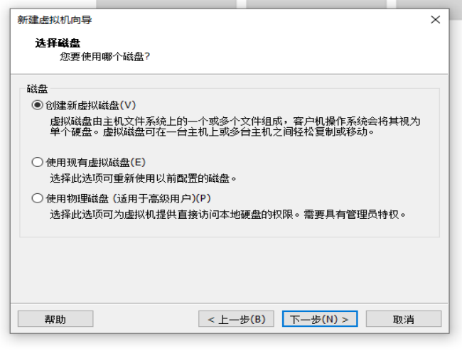 第十一步:选择磁盘,这里选择创建新虚拟机磁盘(V),单击下一步