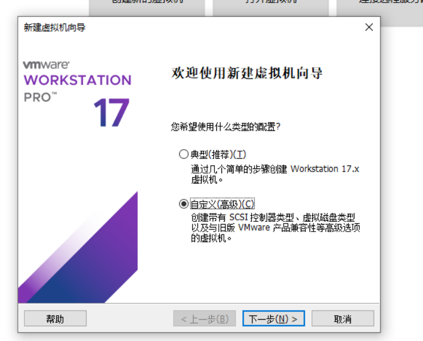 第一步:打开VMware Workstation,单击 “新建”,打开新建虚拟机向导,点击创建新的虚拟机