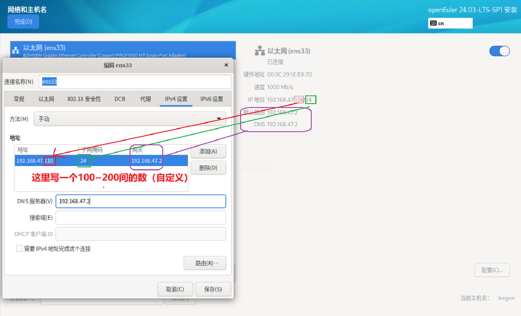 自行把地址的第三个点后面的地址自定义一下,(100~200)之间,这里我设置的是110