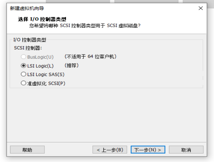 第九步:选择I/O控制器类型,此时选择LSI Logic(L)(推荐),单击下一步