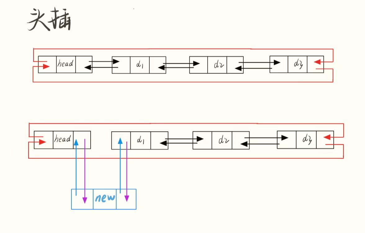 哨兵位头节点原本的下一个节点的prev指针指向新节点(phead->next->prev = newnode;)。