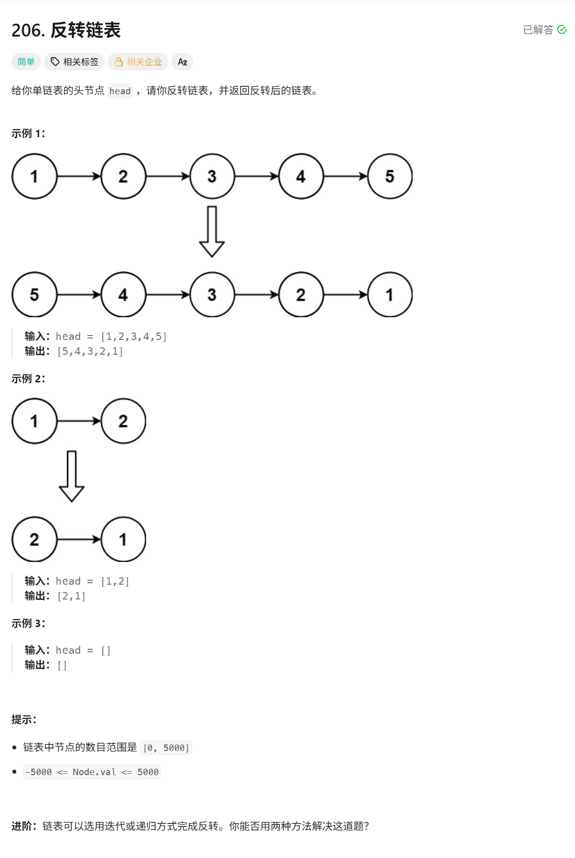 第四题:206.反转链表 OJ链接