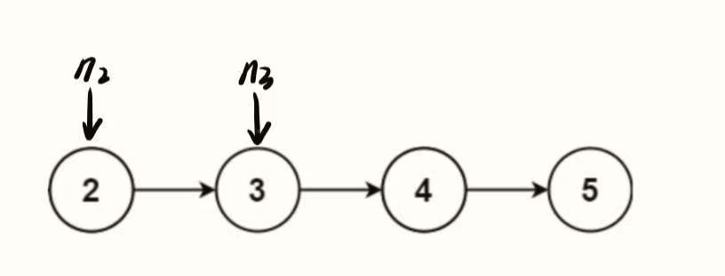 n2 = n3:n2 移动到值为 2 的节点,为下一轮反转做准备。