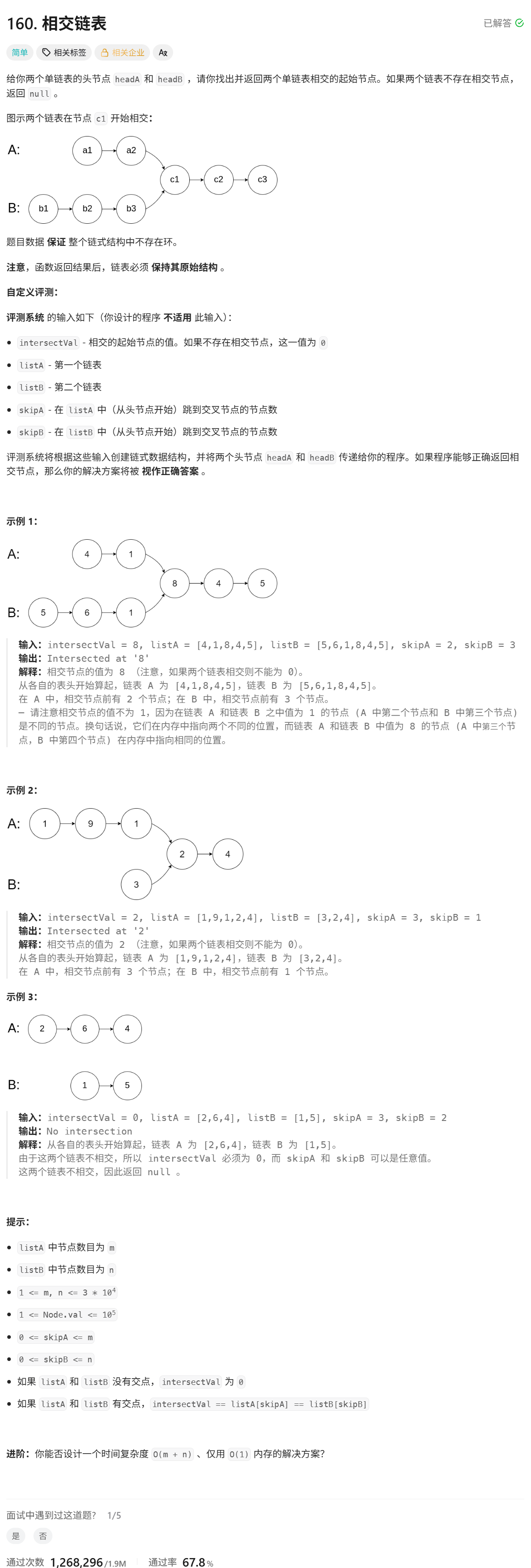 第二题:160.相交链表 OJ链接