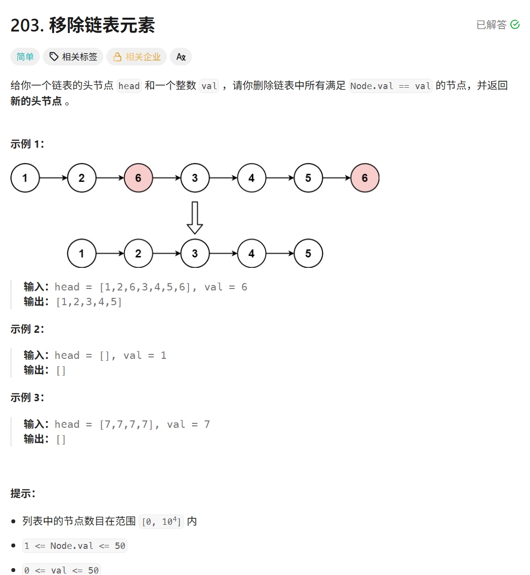 第三题:203.移除链表元素 OJ链接