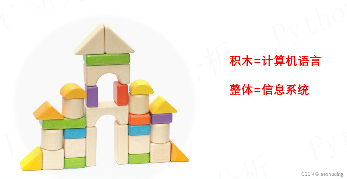 因此,你可以认为计算机编程语言就是积木,可以拼接组装出各种各样的软件模型,而这些软件模型就是你看到的各种信息系统。