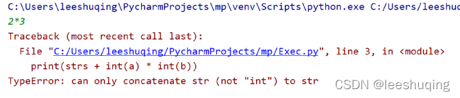 原因很简单,strs为字符串,int(a)是整数,当然不能直接相加。进一步完善为: