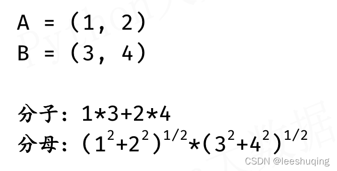 这是著名的余弦相似度,可以计算两个向量之间的距离。比如: