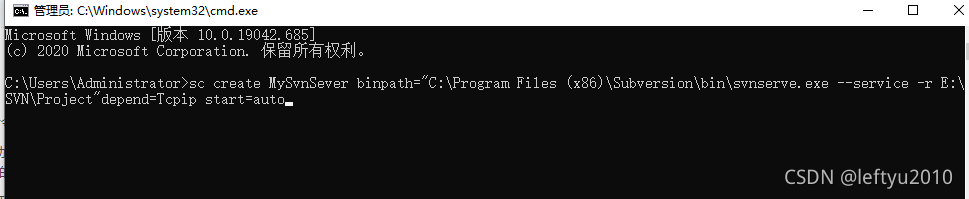 2.第二种把subversion的服务添加到windows服务,作为开机自动启动的服务,同样可以通过cmd命令来完成,命令如下: