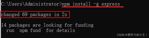 - 测试是否环境变量是否配置成功,在cmd窗口中输入以下指定全局安装express模块