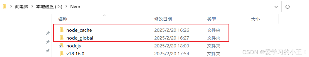安装准备(示例:本人在D盘下创建了Nvm文件夹,并在该文件夹下创建了nodejs文件夹)