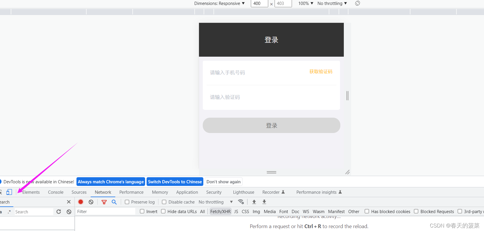 输入手机号码获取验证码到控制台看