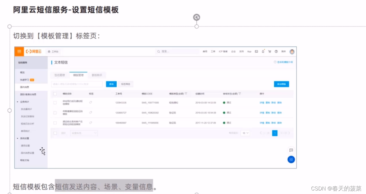 2.4 设置短信模版