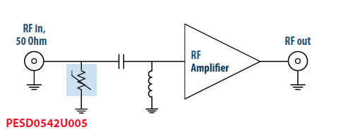 本方案用于保护射频端口的ESD事件,保护频率(30 MHz – 3000 MHz)