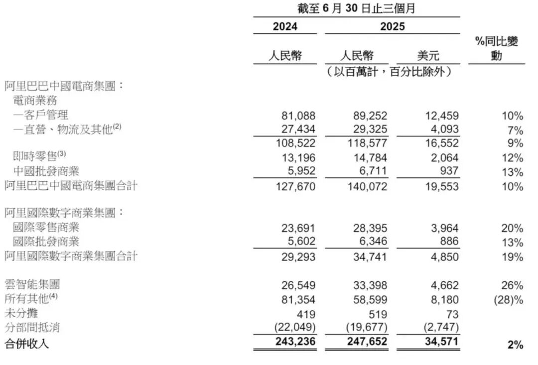 阿里巴巴集团(股份代号:9988(港币柜台)及89988(柜台))今日发布截至2025年6月30日的2025年第二季度的财报。