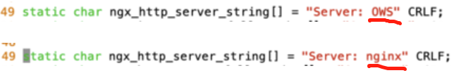 2、修改第二个文件/src/http/ngx_http_header_filter_module.c,将末尾的nginx修改为OWS