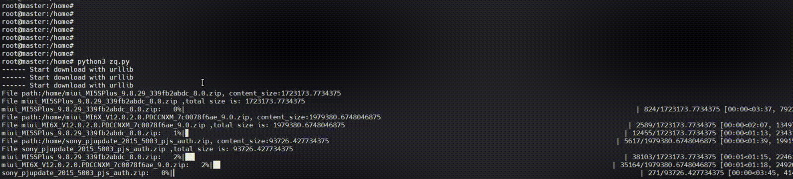 三个下载文件的进度条初始在一行z打印,后面自动分开。