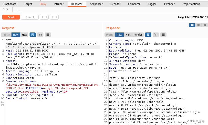 可以看到只要对搭建好的环境进行如下内容的发包,即可看到etc/passwd的内容: