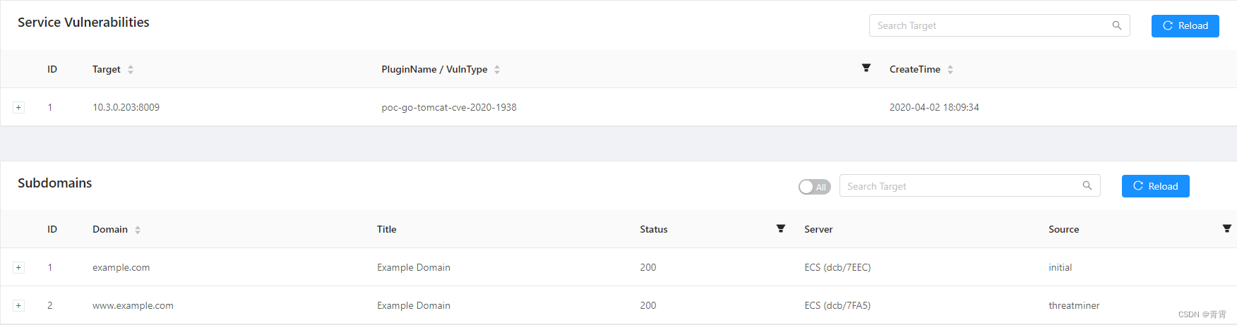 如果使用公共漏洞库,请先下载,并在 config.yaml 中配置。公共漏洞库默认登录账号密码为 admin / admin2。