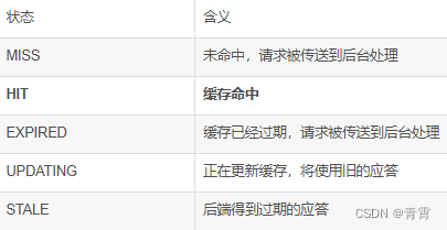 $upstream_cache_status 这个变量有以下几种值: